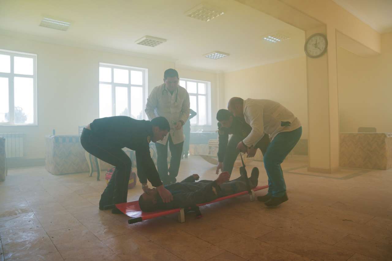 Təlimin praktiki hissəsinə Fövqəladə Hallar Nazirliyinin Dövlət Yanğından Mühafizə İdarəsinin canlı qüvvə və texnikası cəlb olunub. Müəssisə ərazisində şərti yanğınla bağlı “Həyəcan” siqnalı verildikdən sonra xəsarət alanların xilas edilməsi, ilkin tibbi yardımın göstərilməsi və ərazidə baş verən şərti yanğının söndürülməsi istiqamətində əməliyyat məşqi həyata keçirilib.