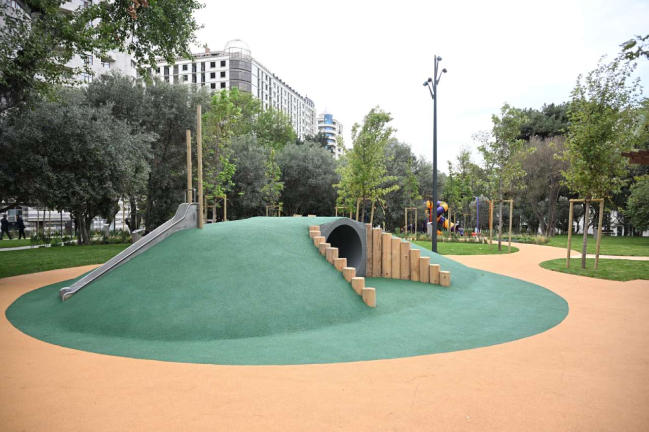 The new recreational area is located at the intersection of Ahmad bey Aghaoglu, Tabriz, and Talat Shixaliyev streets, near the Italy-Azerbaijan University. Covering an area of 3.5 hectares, the park features gazebos, an amphitheater, a tennis court, entertainment zones for children, and a modern lighting system. All necessary facilities have been created for both quiet relaxation and sports activities.