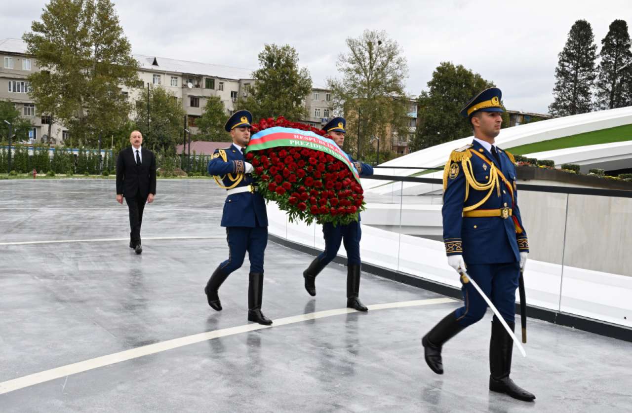 On September 27, President of the Republic of Azerbaijan Ilham Aliyev observed a minute of silence at 12:00 at the Ganja Memorial Complex to honor the memory of the martyrs of the Patriotic War on Remembrance Day.