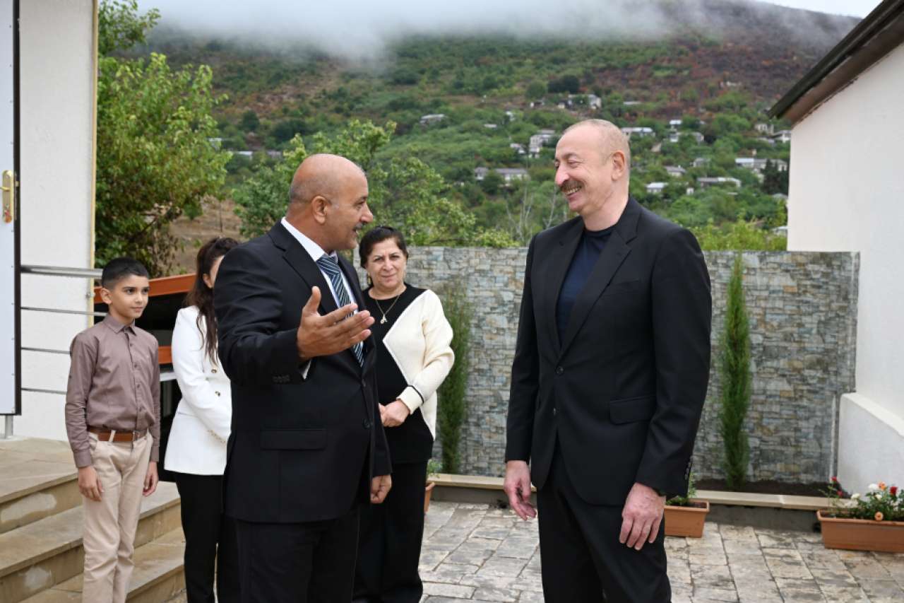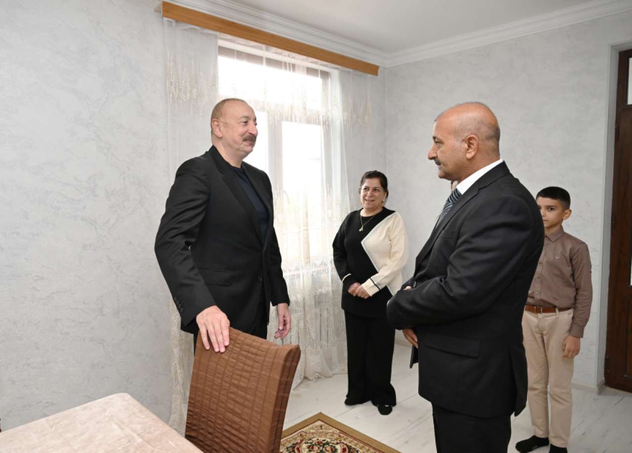 President Ilham Aliyev visited the home of Hamlet Gulmammadov, who has relocated to the village, and had a conversation with his family members.
