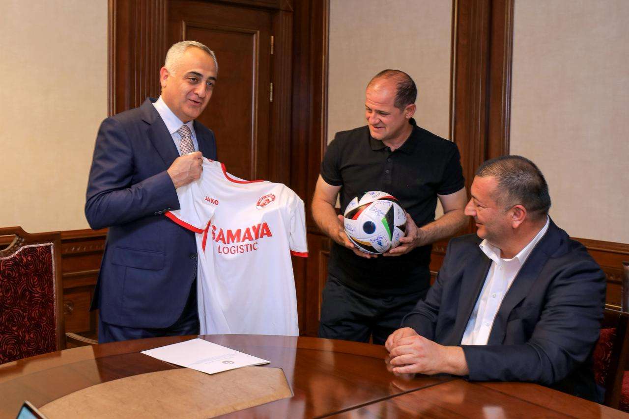 Sonda “Araz-Naxçıvan” peşəkar futbol klubunun baş məşqçisi Elmar Baxşıyev səlahiyyətli nümayəndəyə forma və imzalı top hədiyyə edib, klub üzvləri ilə xatirə fotosu çəkdirilib.