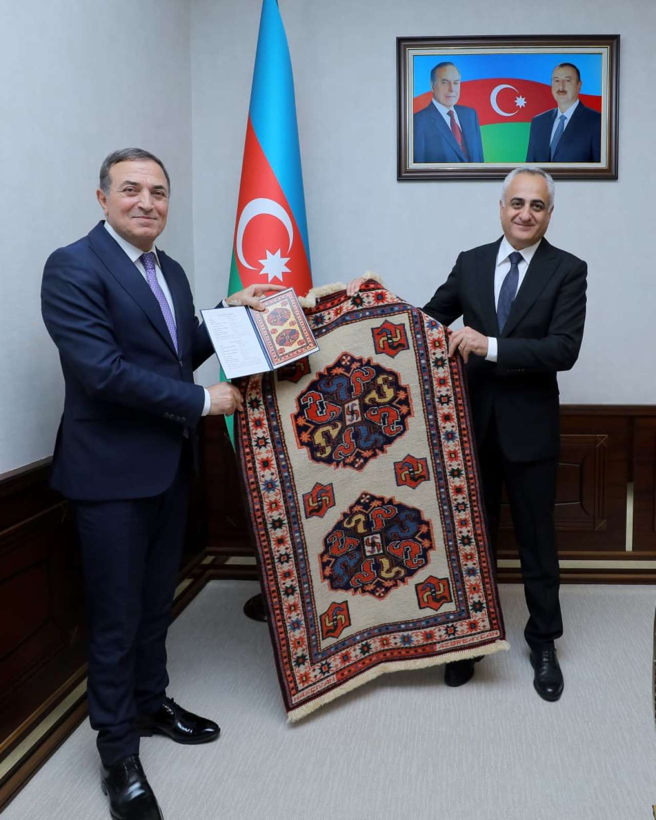 Səlahiyyətli nümayəndə yubilyara Naxçıvan xalçası hədiyyə edib.