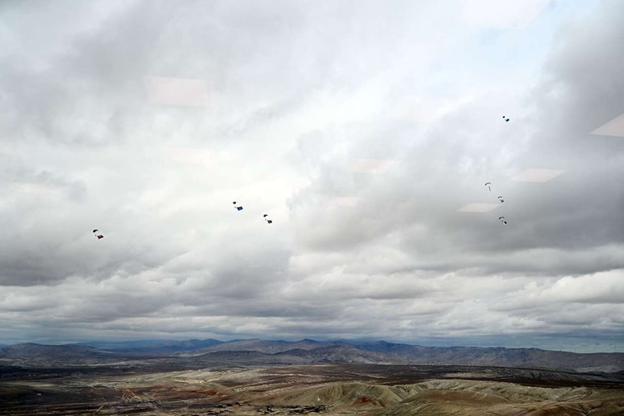 Təlimin yekununda iştirakçı ölkələrin bayraqları ilə paraşüt tullanışları həyata keçirilib.